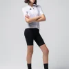 O tecido “tipo rede” e os acabamentos desta peça dão um toque de elegância extra ao ciclista.